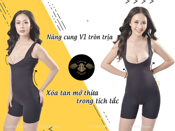 Thiết kế body xẻ của Lan Chi Feelsy có dây giúp cố định gen, tránh xô lệch, nâng cung vòng 1 tròn trịa, ôm trọn từ vai xóa tan mỡ lưng. Xóa tan mỡ thừa trong tích tắc.