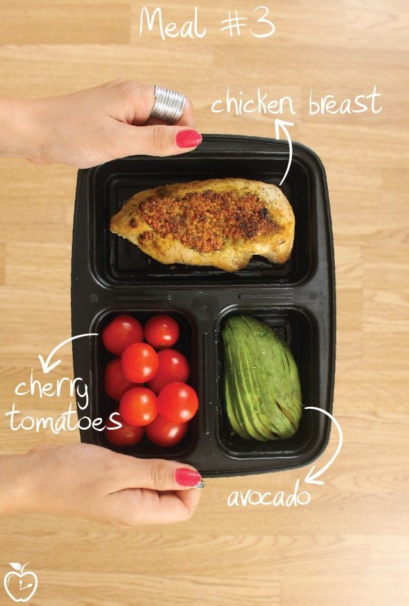 Thực đơn giảm cân nhanh bữa ăn thứ 3 – Ức gà cùng hạt mù tạt, bơ và cà chua bi.