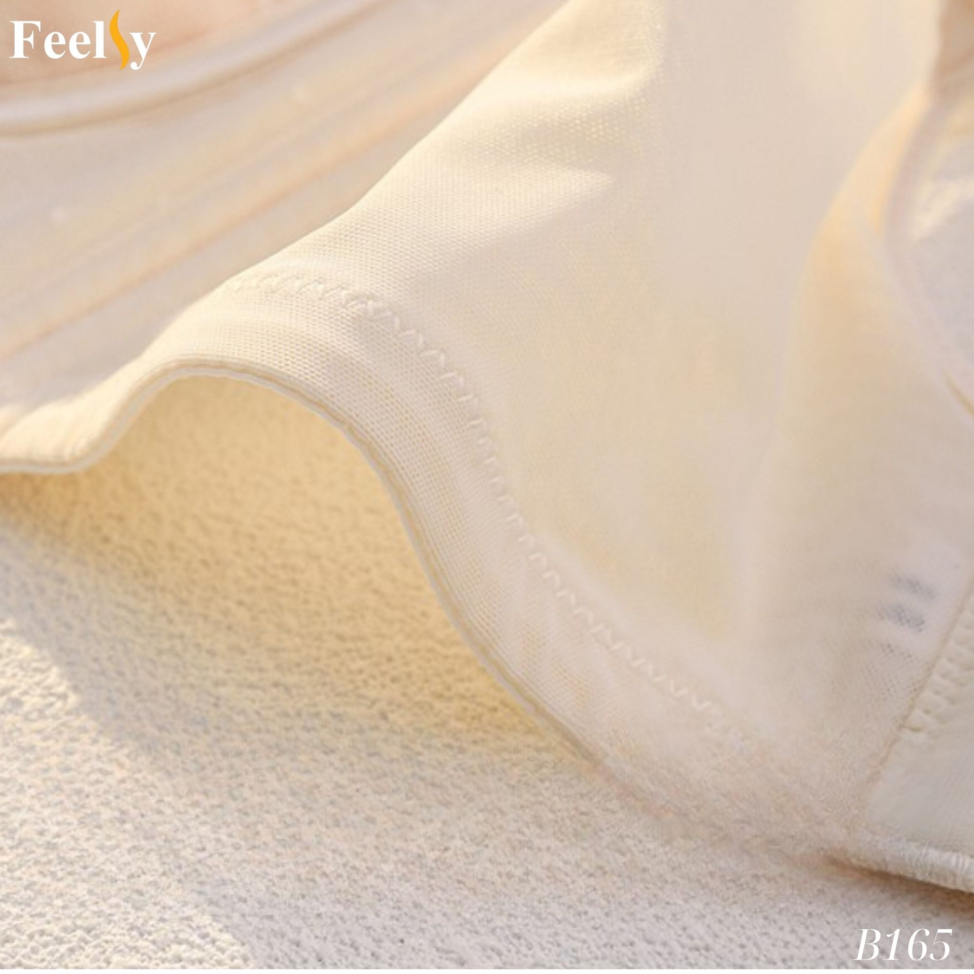 Đệm siêu mỏng 0.3cm – nhẹ, thoáng, không nóng bí, vẫn ôm trọn bầu ngực, chống lộ điểm nhạy cảm. Lớp lót bằng tơ tằm thiên nhiên, mềm mại, dịu nhẹ, bảo vệ làn da nhạy cảm và duy trì cảm giác thoải mái cả ngày.