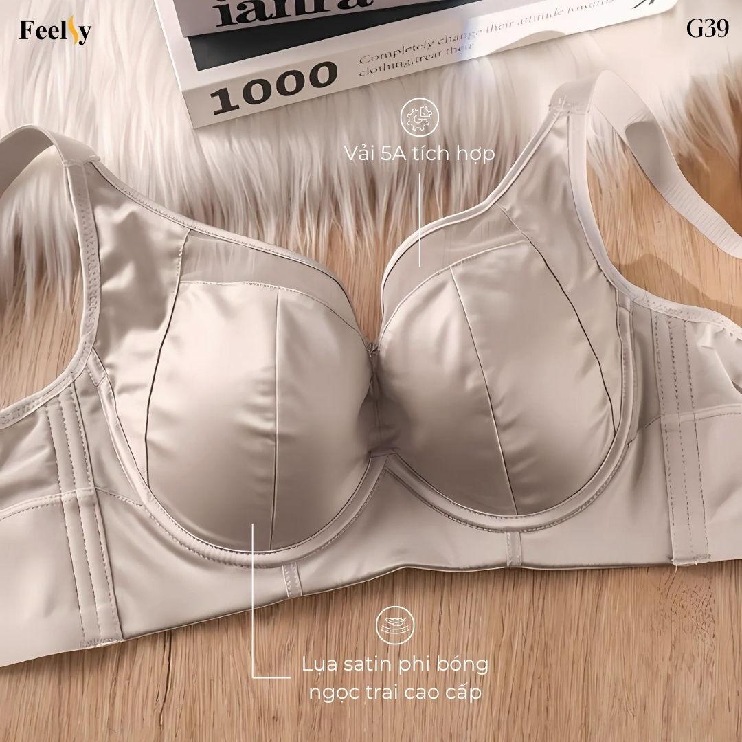 Áo ngực mỏng nhẹ thường dễ lộ nhược điểm: bị hằn viền, ngực chảy xệ hoặc bè ngang. Nhưng với Bra G39, nàng sẽ hoàn toàn yên tâm: Thiết kế full cup ôm sát, cố định vòng một, giữ ngực vào form, tạo dáng căng tròn tự nhiên. Vải satin phi bóng ngọc trai cao cấp: mềm mịn, mỏng nhẹ, thấm hút tốt, giúp thoáng mát cả ngày dài. Công nghệ vải 5A tích hợp: chống bai dão, chống hằn, che khuyết điểm hiệu quả khi mặc đồ ôm.