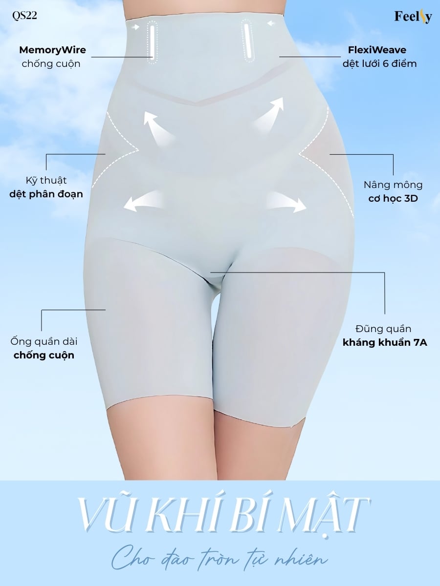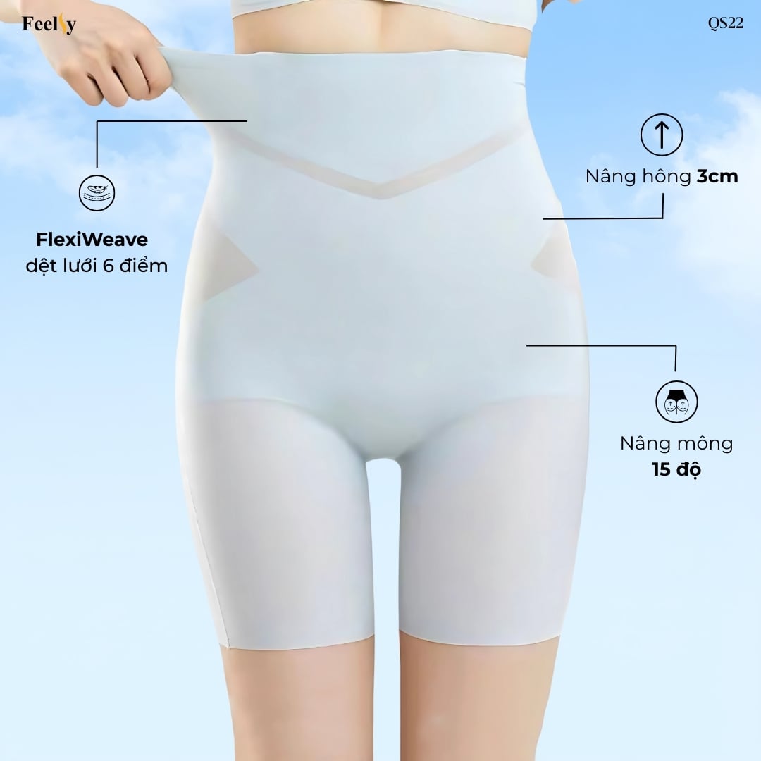 QS22 là chiếc quần “đa năng” khiến chị em mê mẩn – vừa là quần lót, vừa định hình, vừa bảo hộ. Nhờ công nghệ FlexiWeave dệt lưới 6 điểm, vải co giãn đa chiều, mềm mịn như cotton mà vẫn cực kỳ thoáng khí. Cấu trúc nén phân vùng giúp siết gọn bụng – nâng mông – định hình eo mà không gây bó cứng, cùng cạp MemoryWire chống cuộn giữ form hoàn hảo suốt ngày dài. Đáy lụa tơ tằm kháng khuẩn 7A mang lại cảm giác khô thoáng, nhẹ tênh, thoải mái đến mức... quên luôn mình đang mặc.