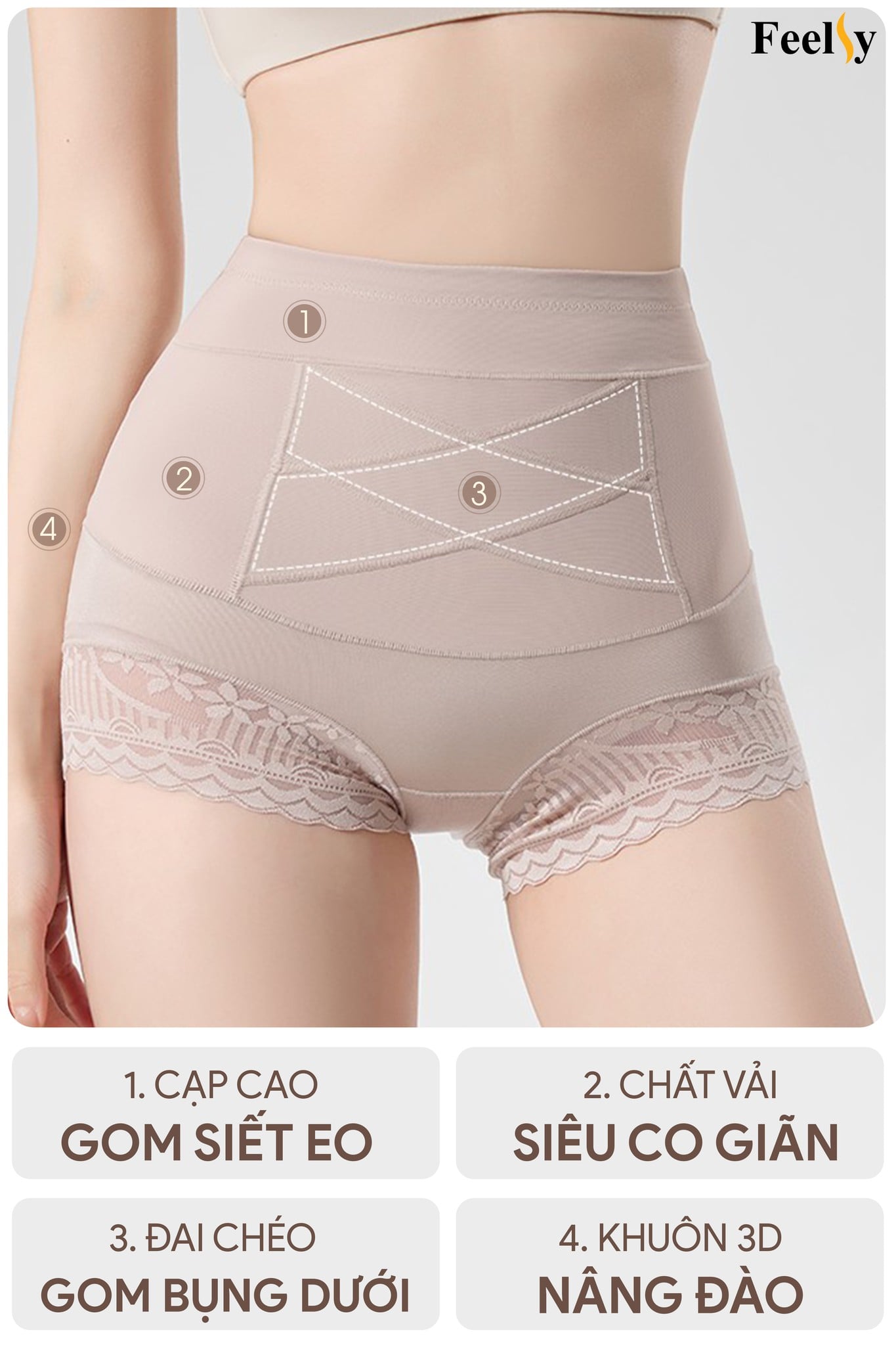 Sử dụng: Quần lót tích hợp gen bụng và siết eo